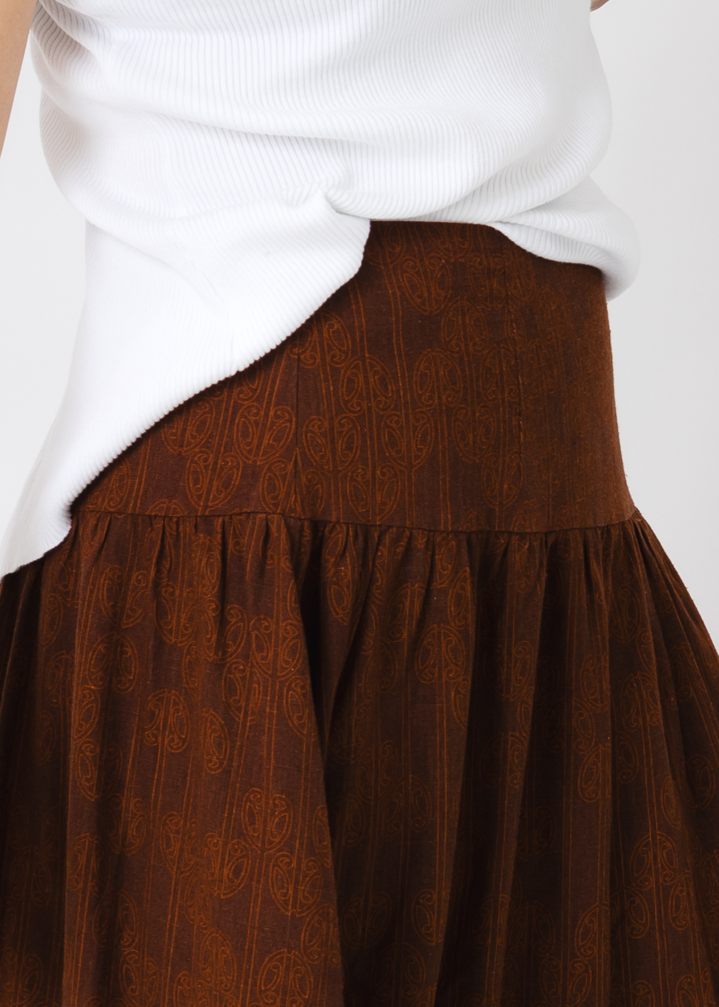 Our Mangopare Linen Collection features four elegant pieces — a dress, skirt, shorts, and shirt — each crafted from premium linen and brought to life with an all-over Māori Mangopare print.